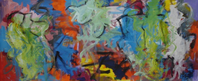 Happy in France, acryl op doek, 225 x 125, zomer 2009
