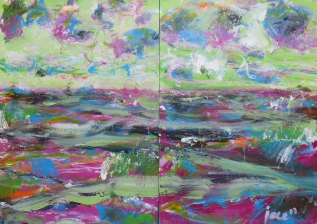 Flowers at the waterside, acryl op doek, 80 x 100, juni 2014