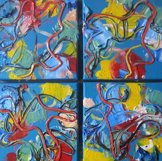 End of summer, 4-luik, olie op doek, 20 x 20, november 2014